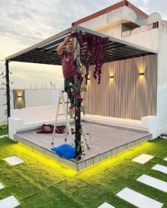 يهتم ديكور الجلسات الخارجية بالرياض بأدق التفاصيل من اختيار الأثاث إلى توزيع الإضاءة. نختار خامات أنيقة وألوان متناسقة لتخلق جوًا مريحًا وفخمًا في آنٍ واحد. نقدم تصاميم مستوحاة من الطابع العصري والشرقي لتناسب ذوق كل عميل. فمهما كانت مساحة فناءك أو حديقتك، نضمن لك مظهرًا أنيقًا ومريحًا يعكس ذوقك الراقي.