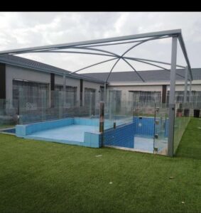 تُعد مقاومة الشمس من أهم مواصفات مظلات المسابح في الرياض، حيث تُصنع المظلات بخامات تمنع اختراق الأشعة الضارة بنسبة كبيرة وتقلل الحرارة بشكل ملحوظ. يتم استخدام قماش PVC وHDPE، بالإضافة إلى البولي كربونيت العازل. تساهم هذه المواد في توفير حماية فائقة للمسبح، مما يجعل المكان أكثر راحة خصوصًا في فصل الصيف.